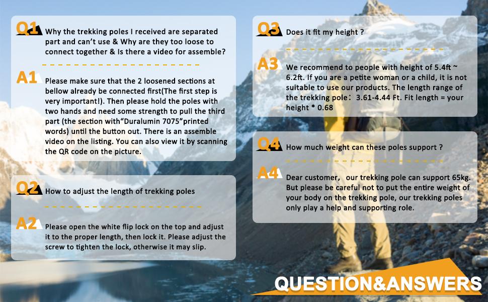 登山杖共 5 节,第 3 节和第 4 节为隐藏式设计,请用力拉出。