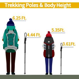 示例:您的身高是 5.35 英尺,所以登山杖的高度应该是 5.35 * 0.68= 3.61 英尺