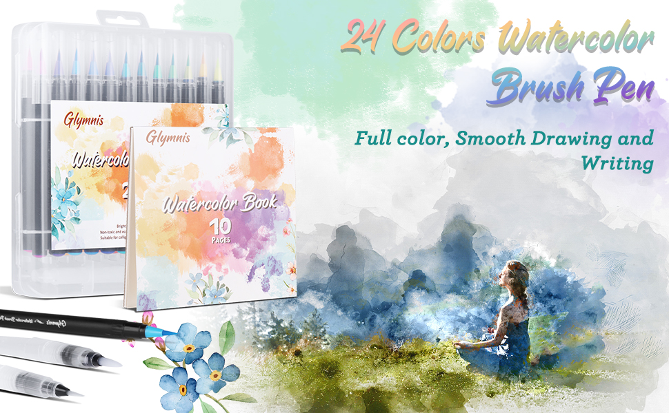 - Glymnis 水彩笔有 24 种鲜艳的颜色。这些颜色很容易混合,只需用水刷笔中的少量水即可。让您以不同类型的个人喜好和技术制作出无数色彩缤纷的效果。