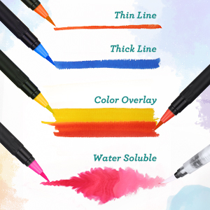 - 超值套餐提供 24 支笔 + 2 支混合画笔 + 1 本图画书。水彩笔标记笔可用于工作或学习进行标记,不仅适合工作,还可以为无聊的生活带来乐趣。