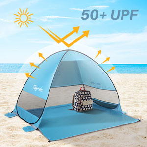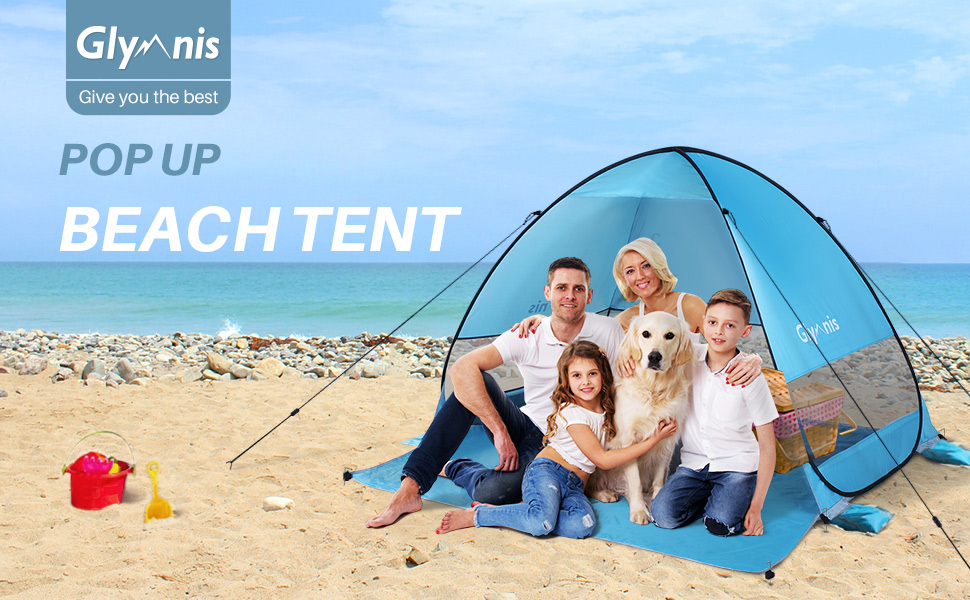 - Glymnis 弹出式沙滩帐篷配备 190T 镀银涤纶和 UV 涂层(UPF 50+ UVA:5%),确保您和您的家人远离强烈阳光的伤害