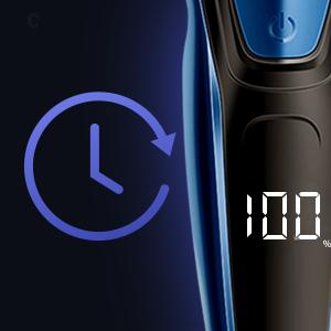 内置智能芯片可检测电池状况。电池电量低时,剃须刀的电机转速可以稳定